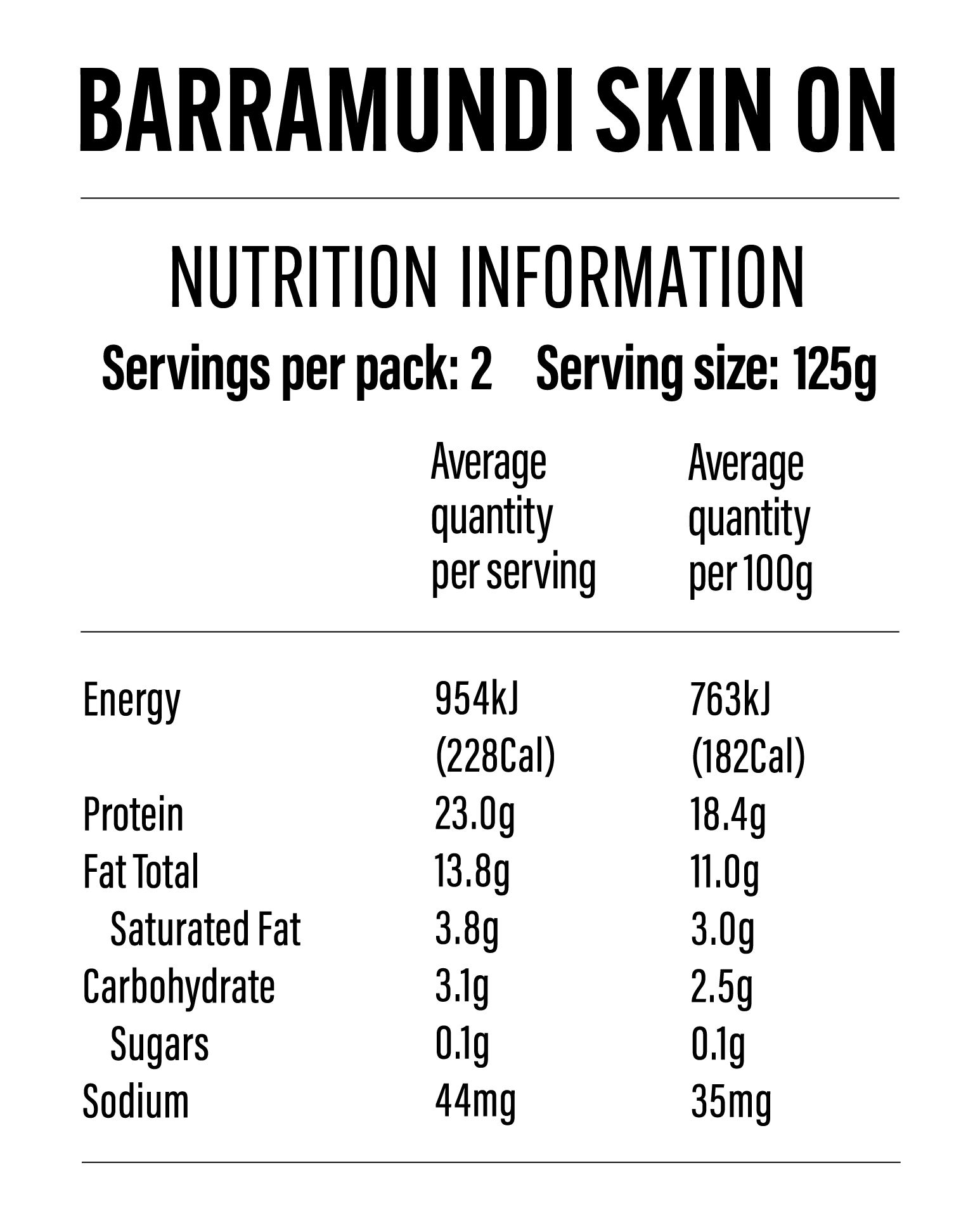 100% Australian Farmed Barramundi (Lates calcarifer) (Fish).