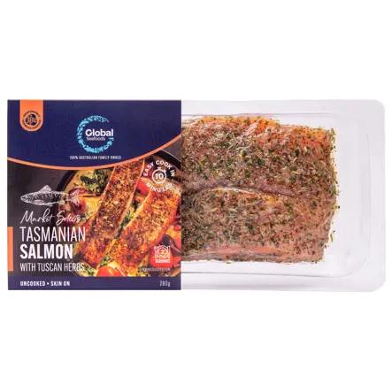 At Global Seafoods, impeccable standards of quality and freshness are everything to us – we supply seafood to Australia’s most discerning chefs, after all. This delicious Tuscan Herb Australian Salmon is no exception. Responsibly sourced and carefully selected so you can now easily enjoy the best quality seafood at home.